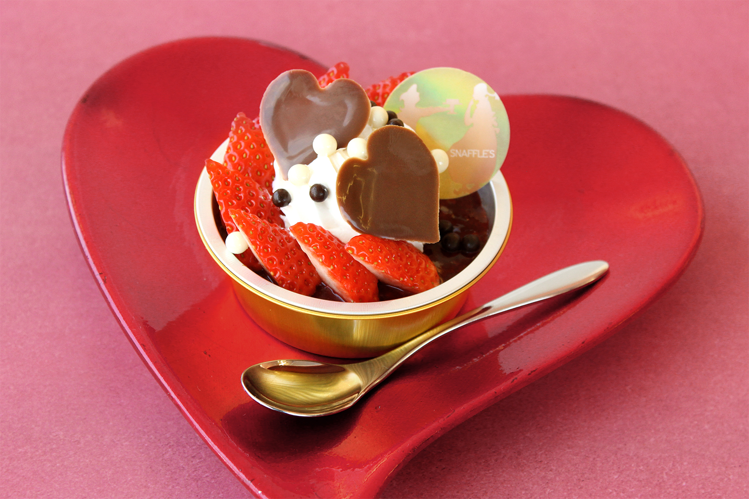 大きな赤いリボンが愛らしくバレンタインを引き立てます。